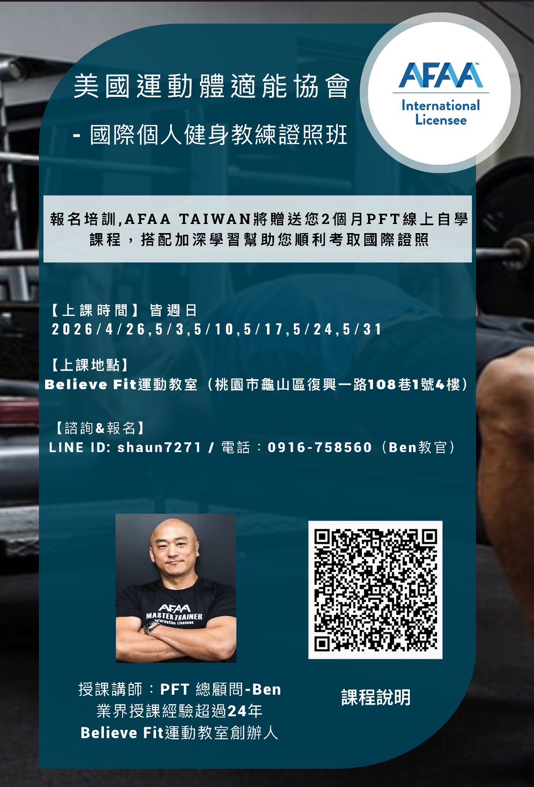 會場: 新北市中和區宜安路182號 (新創智慧健身 雙和館)