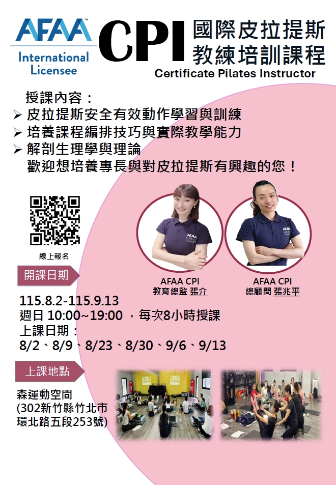 會場: 台北市中山區朱崙街60號B1 (愛表現體能學院)